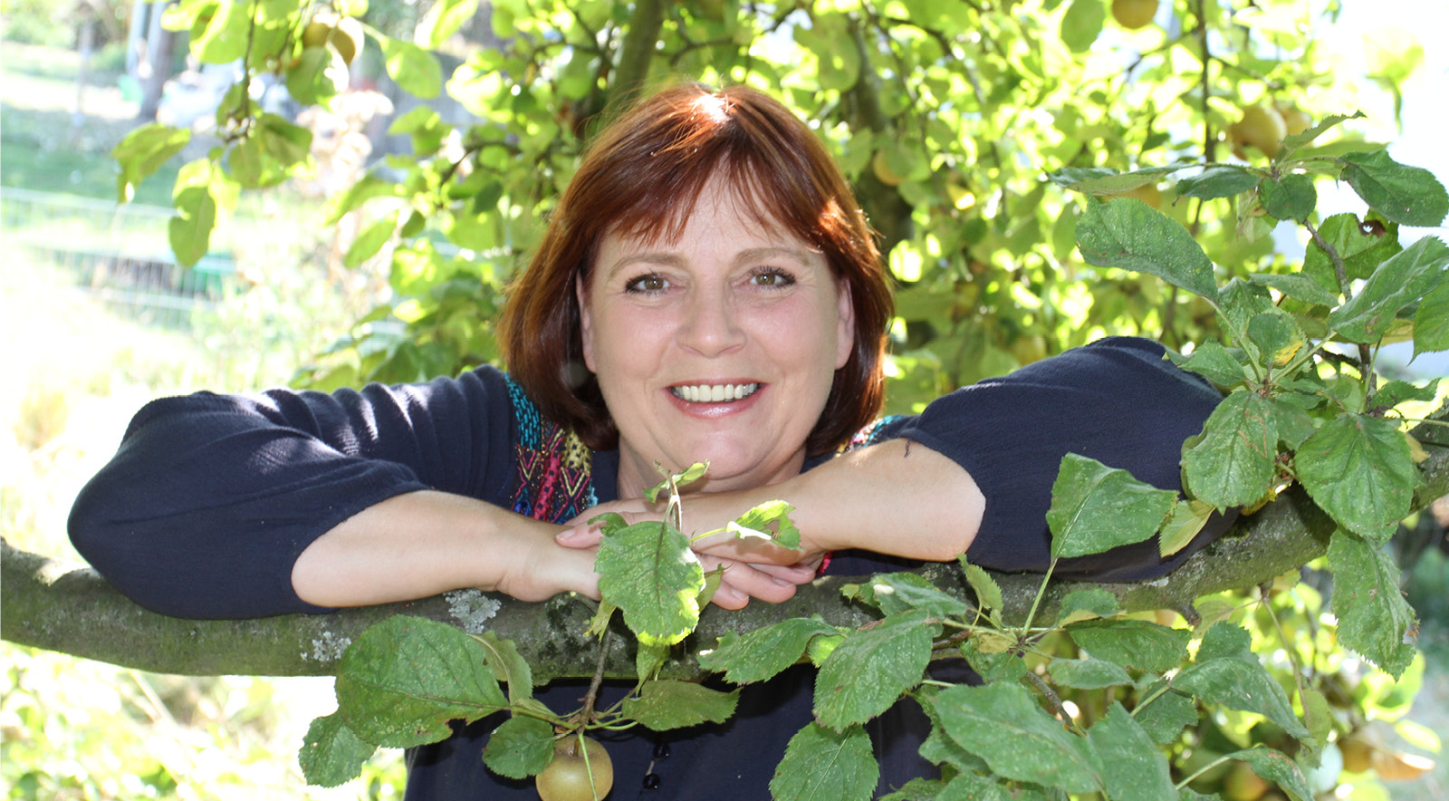 Hier gibt es Blumenwiesen und Apfelbäume,
