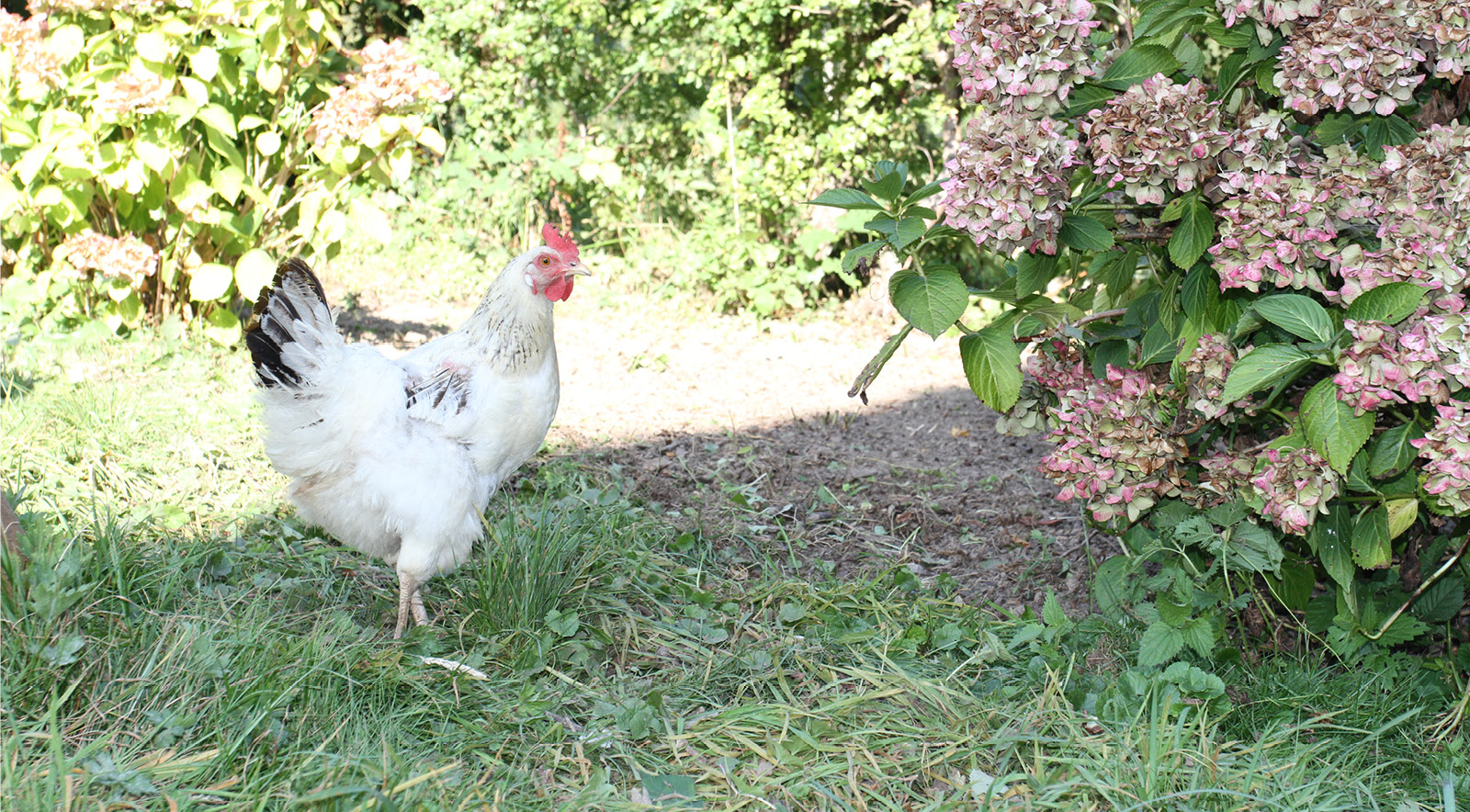 Und dann leben hier noch ein sehr lieber Hund, zwei Katzen und fünf Seidenhühner.